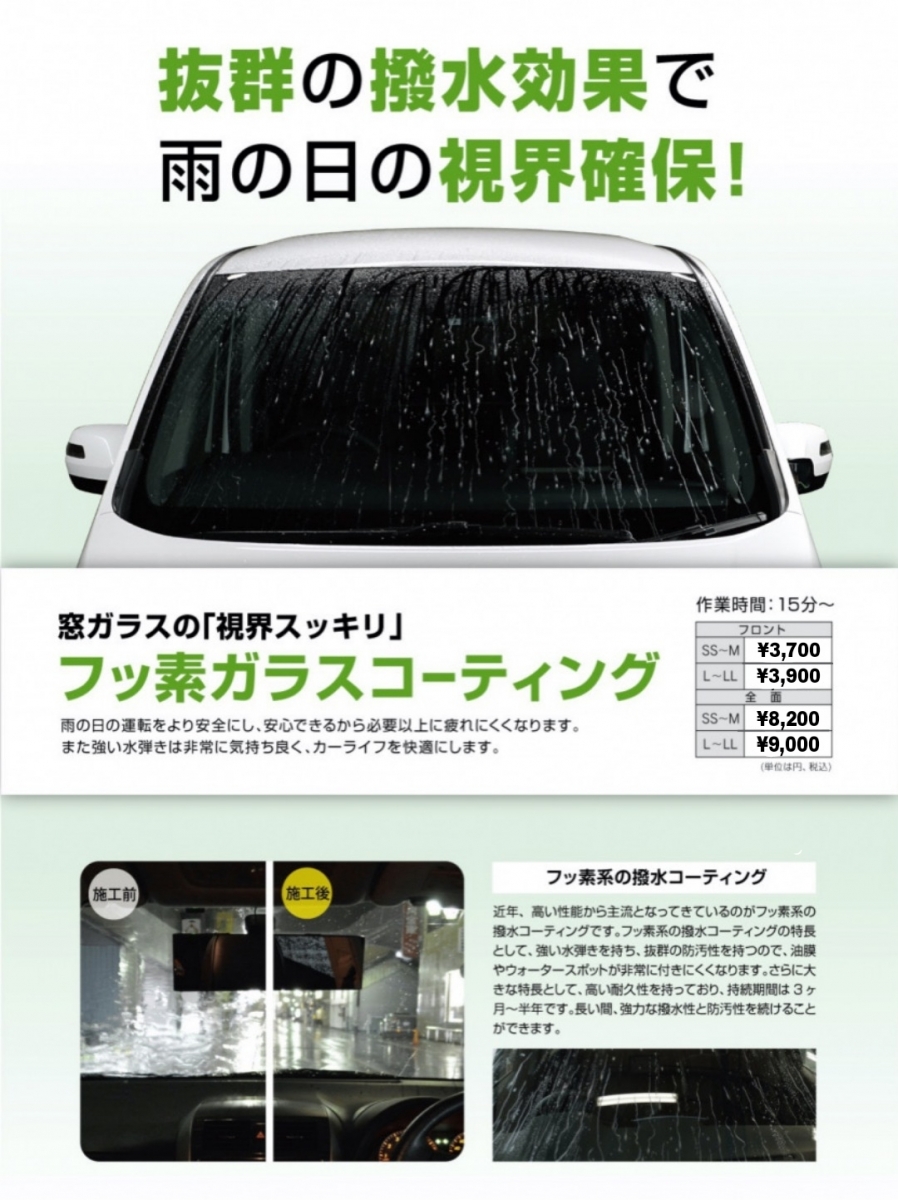 手洗い洗車やコーティング施工中の代車の貸し出しは無料になりますので必要な場合はご相談下さい。
