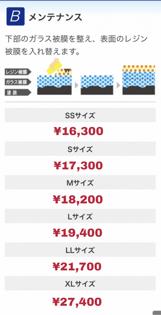 洗車+αの施工時間で、約3ヵ月毎の繰り返し施工でどんどん美しくなっていき、新車に戻っていくような感動を味わえます。