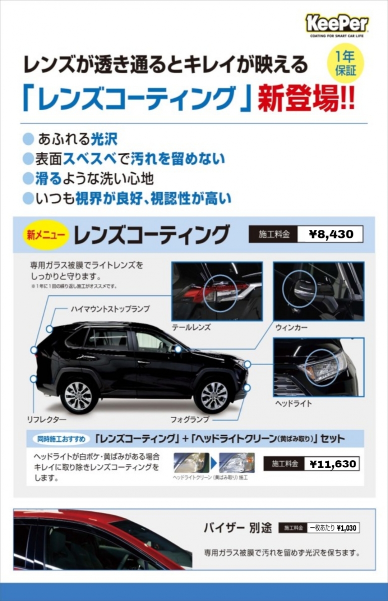 ダイヤモンドキーパーの艶、EXキーパーの汚れにくさを兼ね備えた雨を味方にしたコーティング。汚れの密着を防ぎ雨が降ると撥水力で雨と一緒に埃などの汚れが落ち、洗車をしたように綺麗になります。