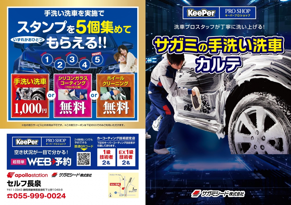 当店で純粋手洗い洗車を実施していただいた際に、日付とスタンプを1つ押させていただき