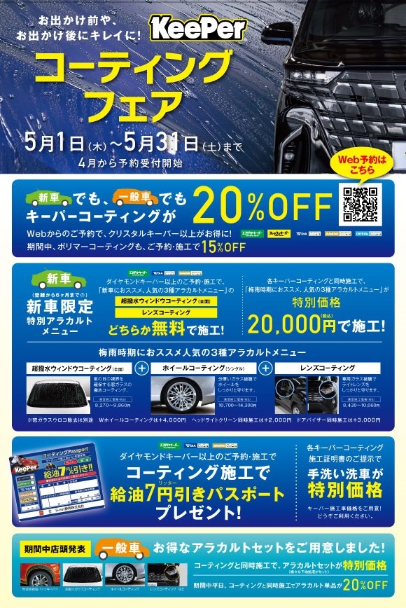 Keeperコーティングのご予約は、Web予約が断然お得!!