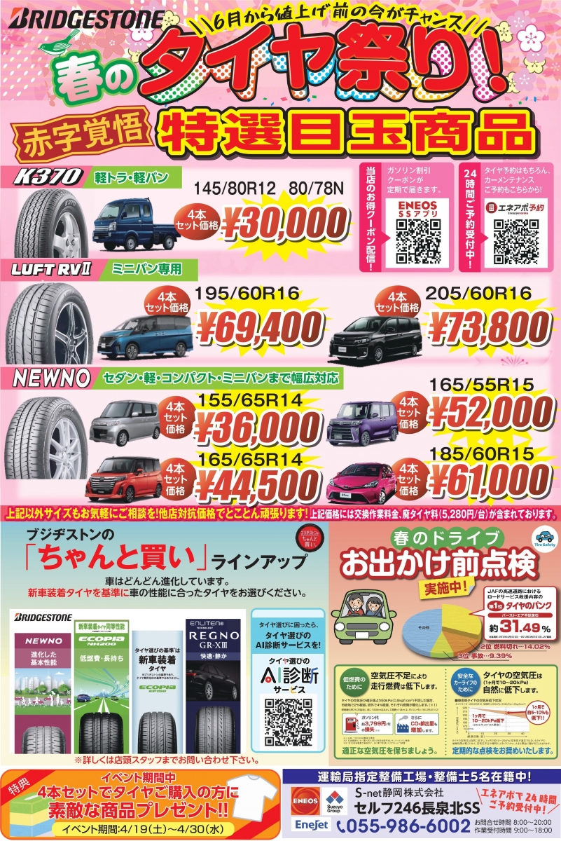 自社工場での車検・整備・ENEOSカーリース(新車)・中古車販売・お車買取り 等々、