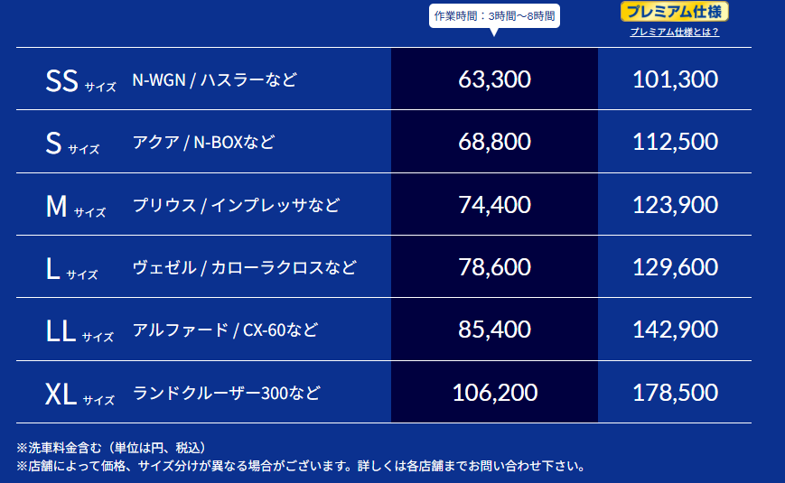 プレミアムの詳細はこちらになります! 外側だけではなく細かい部分までコーティングが行えます!