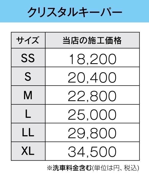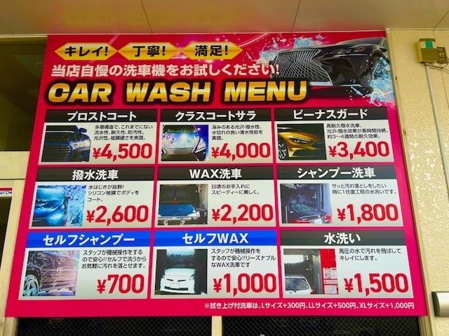 ※上記、手洗い洗車価格にプラス500円で撥水コートも追加できます。