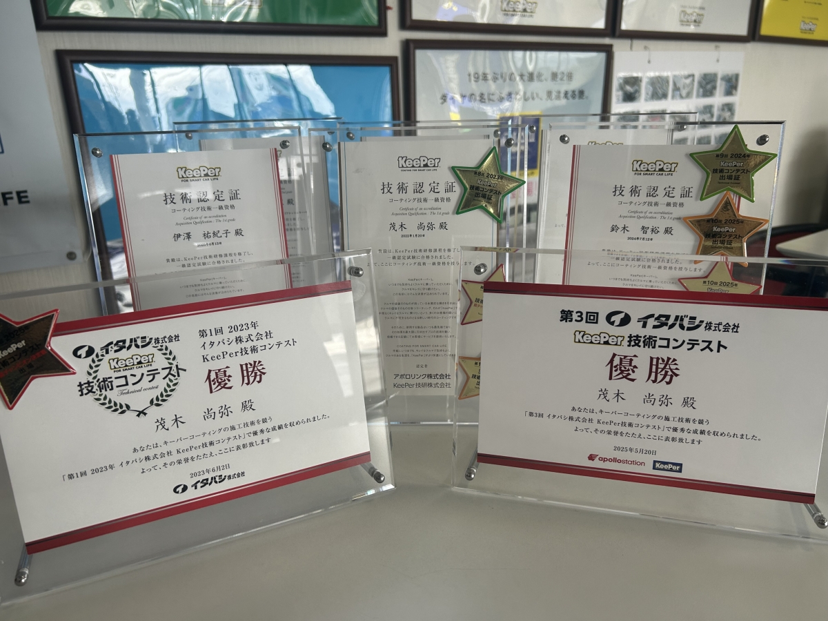 キーパープロショップ上戸祭は技術1級資格者3名、技術2級資格者3名が在籍しています。
