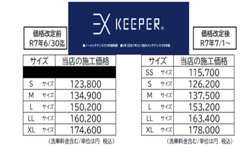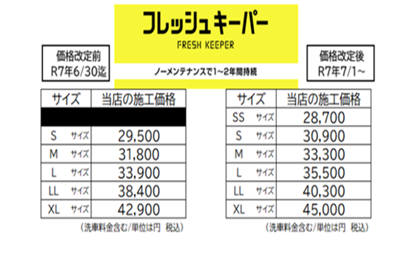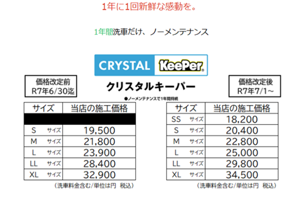 純水手洗い洗車・キーパーコーティング の価格を2025年7月1日より改定させていただく運びとなりました。