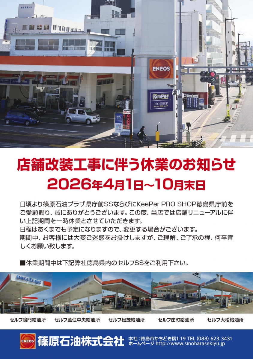 キーパープロショップ徳島県庁前(篠原石油)です