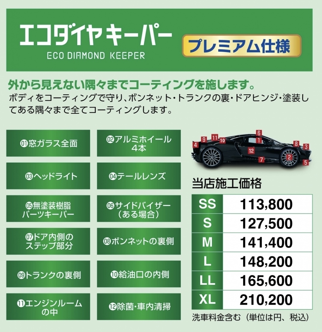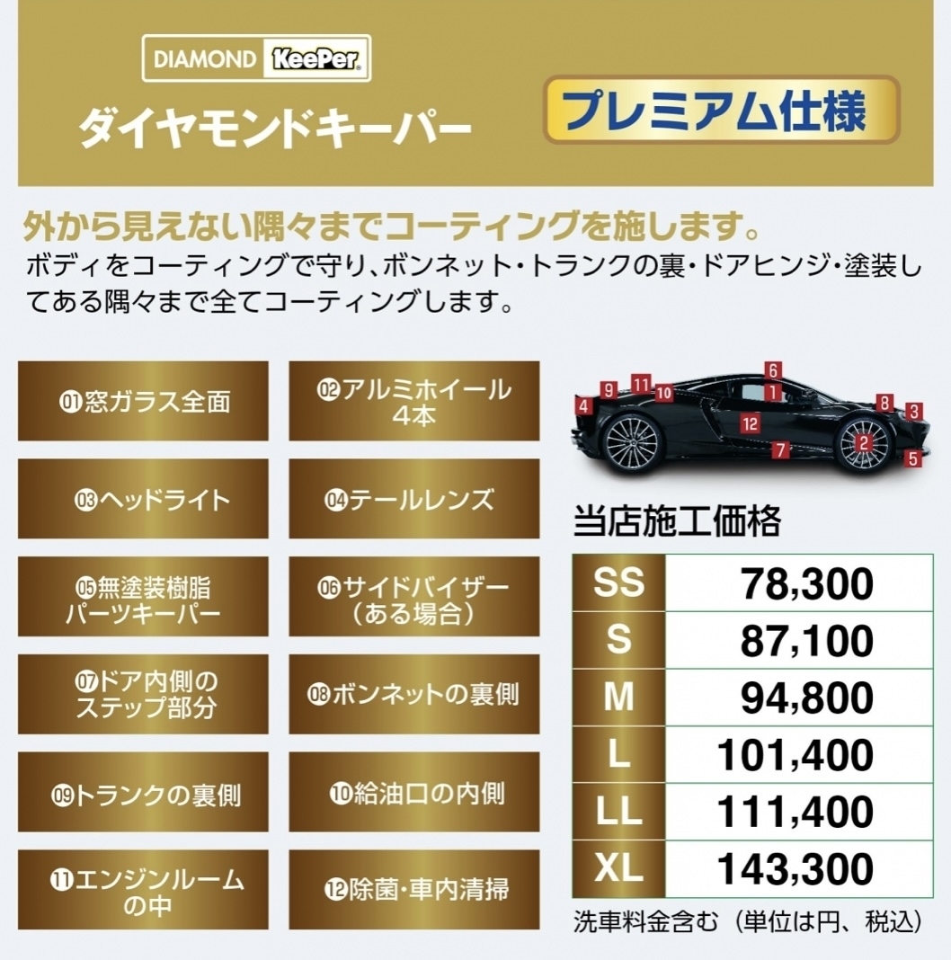 キーパーコーティング、アラカルト一覧表はこちらをクリック!↓