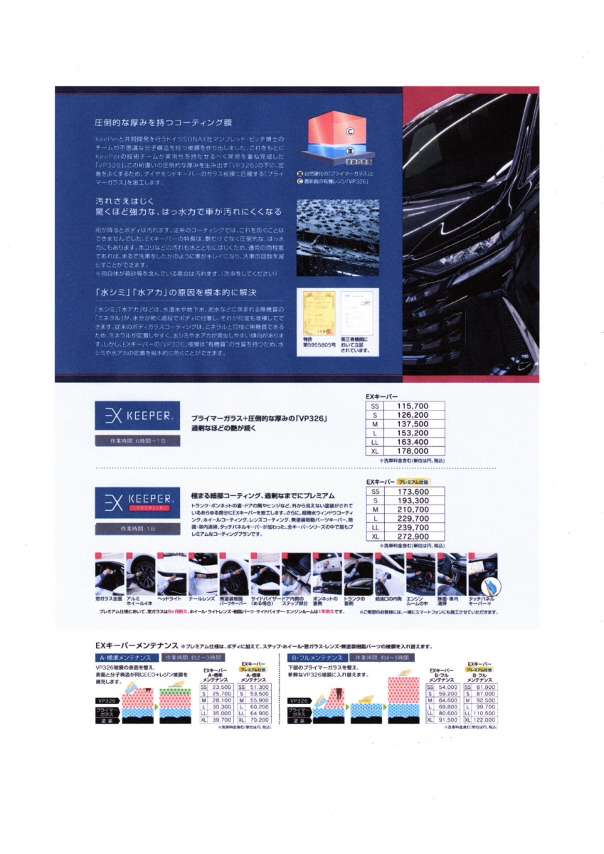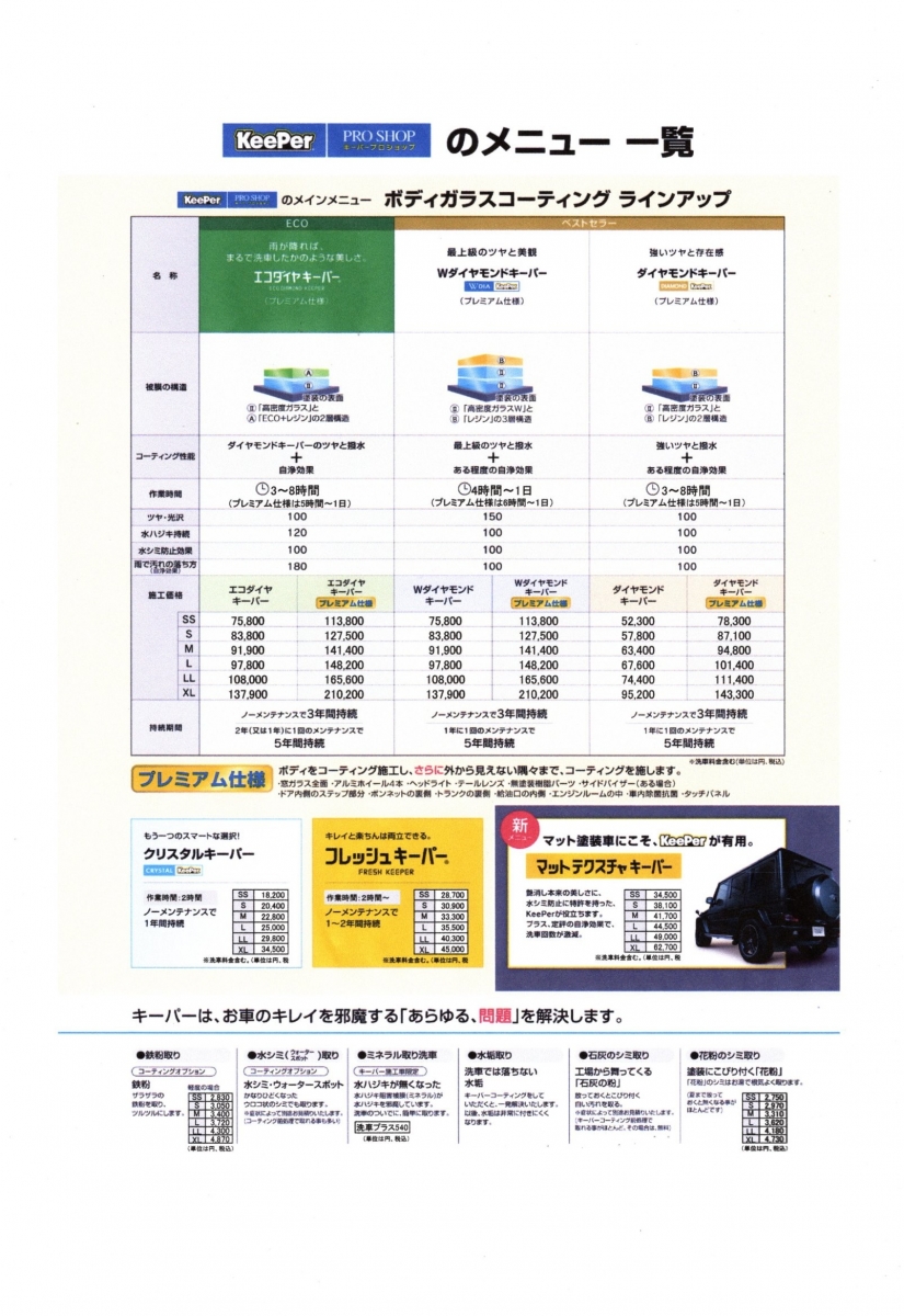 キーパーコーティングのご紹介 ご予算・車の状態・保管状況・走行条件あらゆるニーズに対応しお客様にぴったりのコーティングをご提案します!