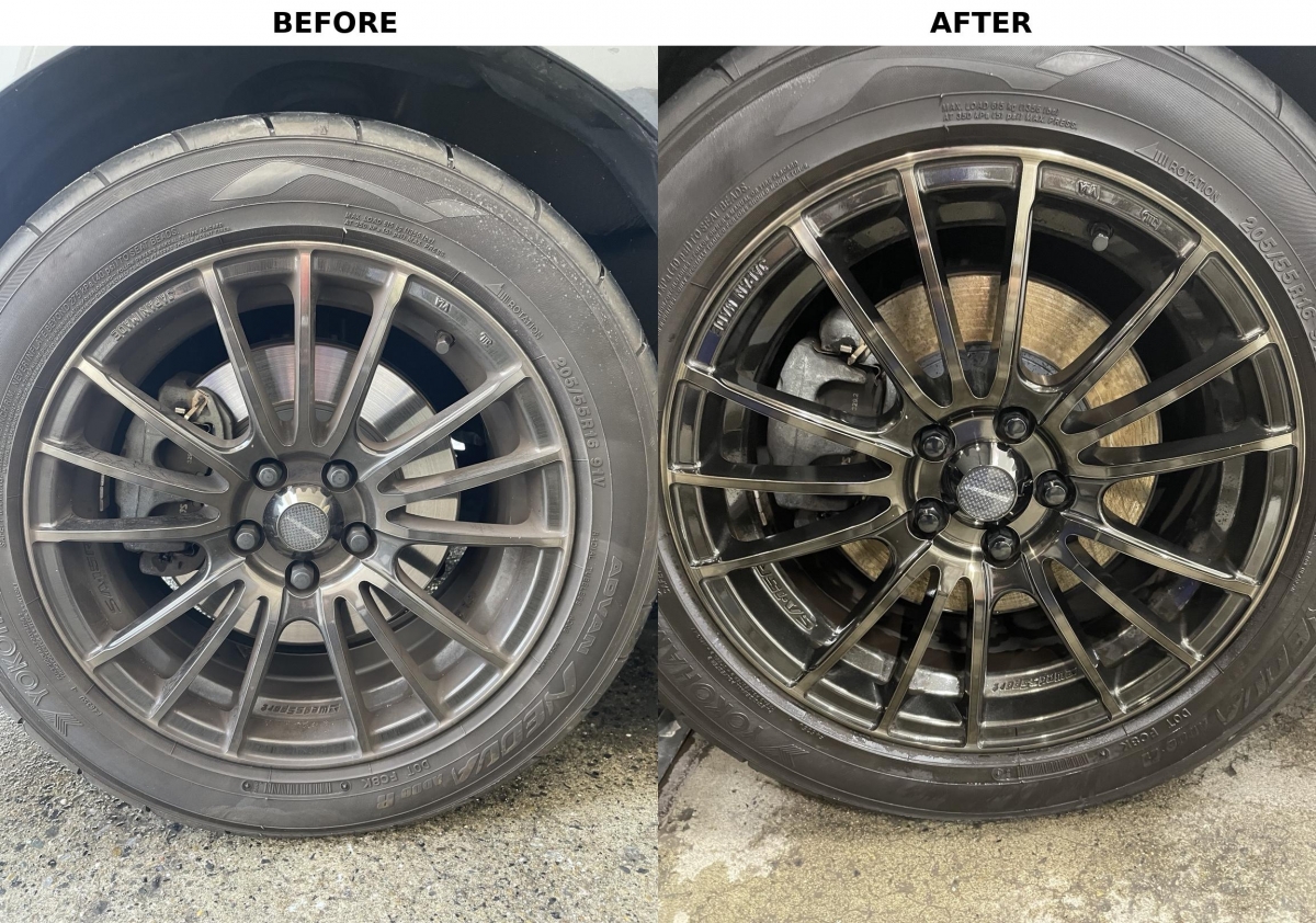 ブレーキダストで固着した汚れも、 ここまで美しく仕上げます。