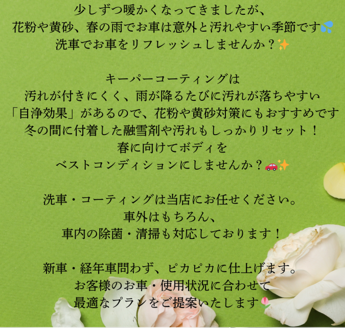 また社内コンテスト以外にも研修や勉強会により、お客様に安心していただけるコーティングや洗車を提供できるよう日々切磋琢磨しております!