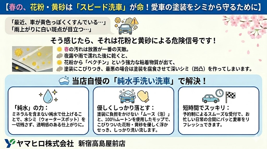 ※雨自体が黄砂などを含んでいる場合は洗車が必要です。