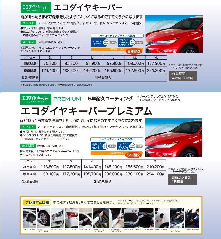 - 当店は手洗い洗車だけではなく、コーティングにも力を入れております。お車の汚れなどでお悩みのことなどがありましたら、お気軽にご相談ください。