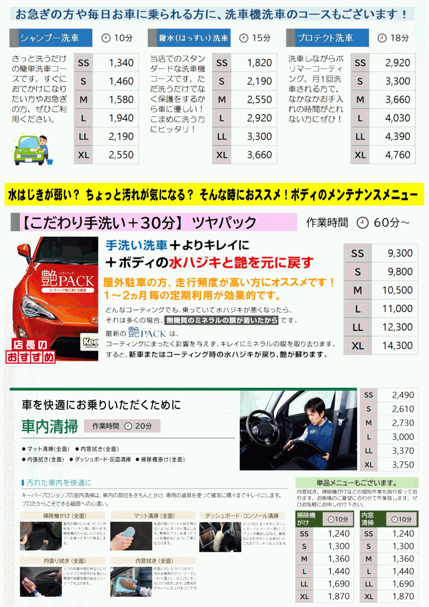 ☆ 洗車・コーティングメニュー ☆