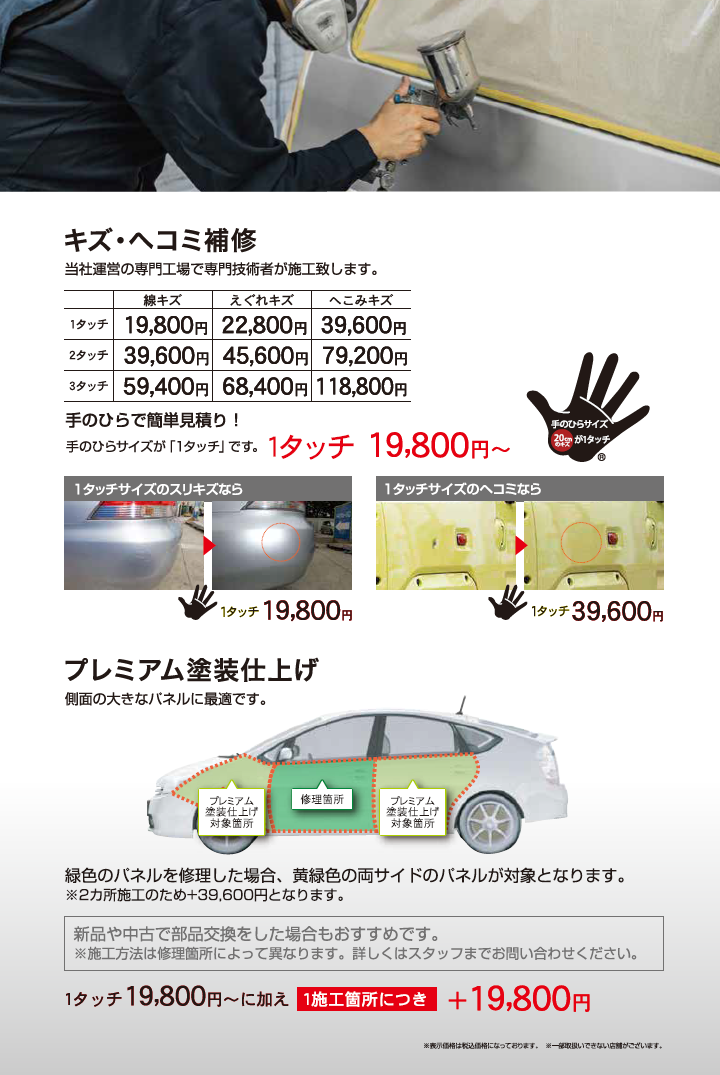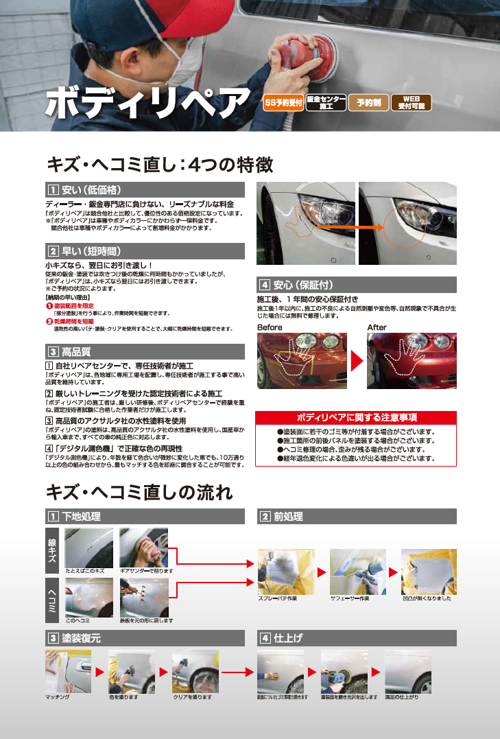 ※KeePerコーティングを既にされていてボディリペアをご注文いただいた場合 ボディリペア施工ヶ所にコーティングを部分施工することもできます。 詳しくは店舗スタッフへご相談ください。