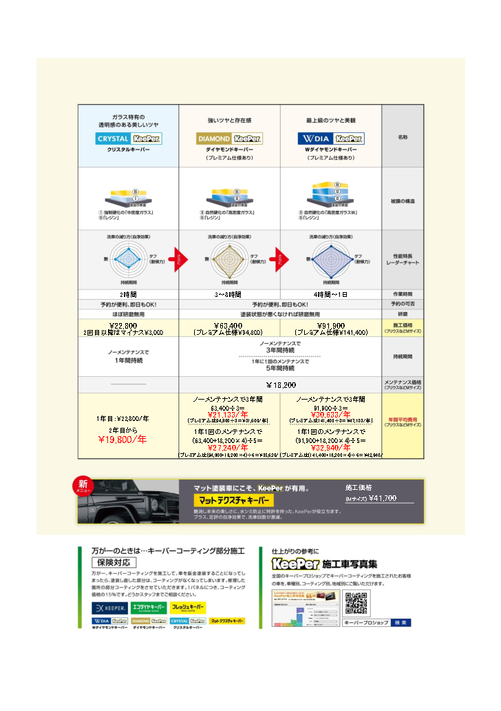 ●新車はもちろん、今すでにしているコーティングをかけかえる時に値段がちょうどいい。