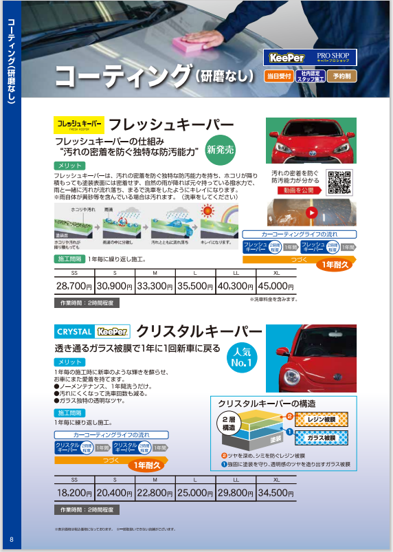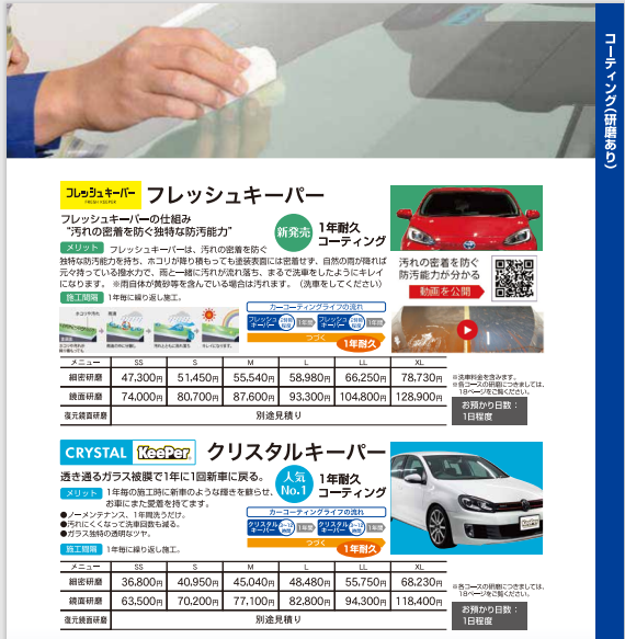 キーパーコーティングは作業時間がかかりますので、ご予約をしていただけると作業がスムーズに行えますので余分な時間がかかりません。