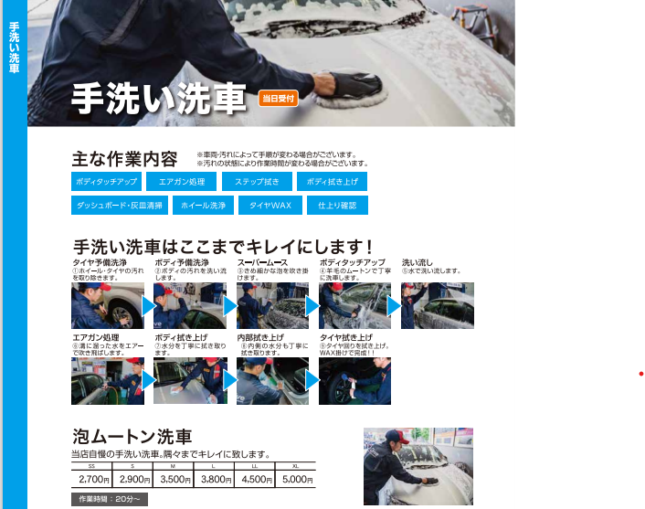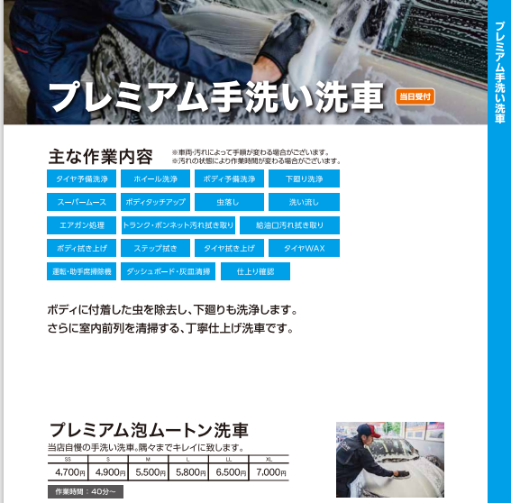 - 9:00~18:00 (洗車受付17:30まで)