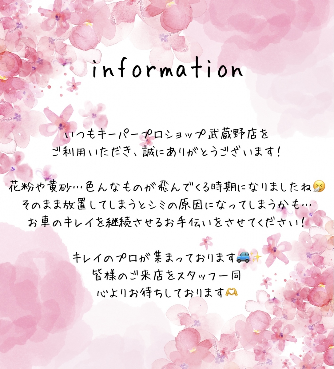 武蔵野店コーティング受付~