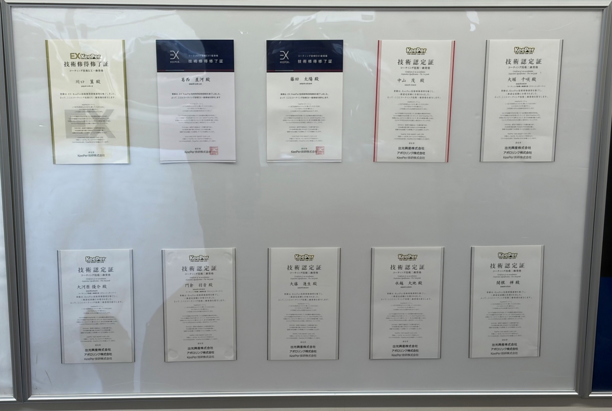 当店ではお客様との繋がりを大事にしております。作業後のサポートを大事にしており、いつでも相談ができるよう、資格者を常に配置しています。当店の資格者は7人と全国レベルで多いです!!常に資格者がいるので、いつでもお車のキレイに関する相談ができます!