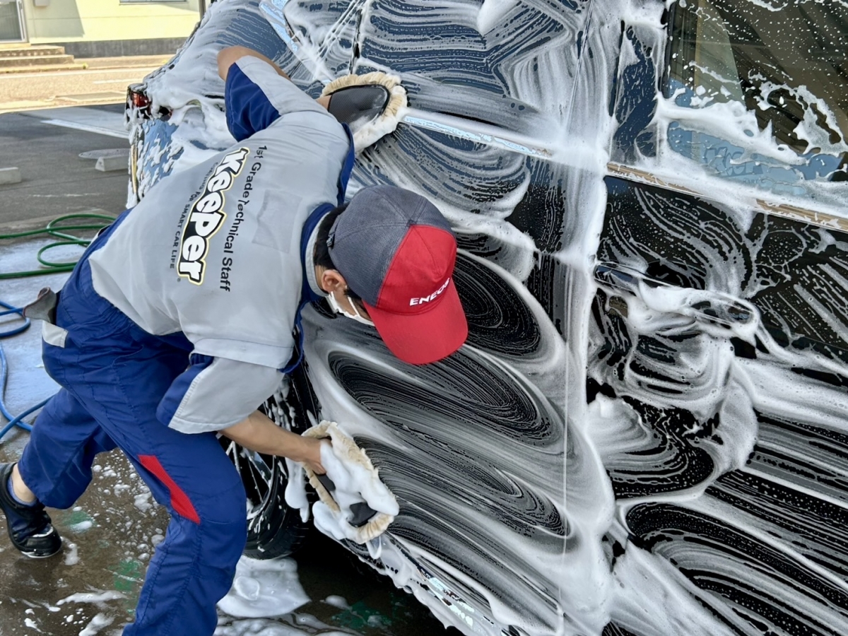 A.通常の水洗い洗車・シャンプー洗車で結構です。洗車機での洗車も、全く問題ありません。 洗った後は拭き上げをしてください。水道水には、ミネラルが多く含まれているため、乾くとシミの原因となります。(雨は水道水や井戸水に比べ、ミネラル分は非常に少ないため「雨」が降る度に拭かなくても問題は全くありません) コーティング被膜耐久力低下の原因となりますのでシャンプーを使う場合は必ずコーティング剤やコンパウンドの入っていないものをご使用ください。(鳥のフン、樹液、花粉が付いた場合は、なるべく早めの洗車をお願いします。