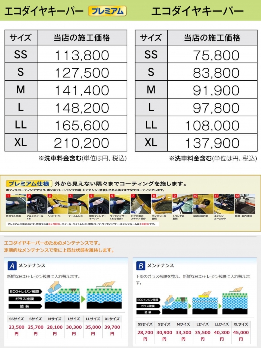 お電話でのご相談でもご対応できますが、ご一緒にお車を見ながら、最適なメニューをご案内させていただきます。