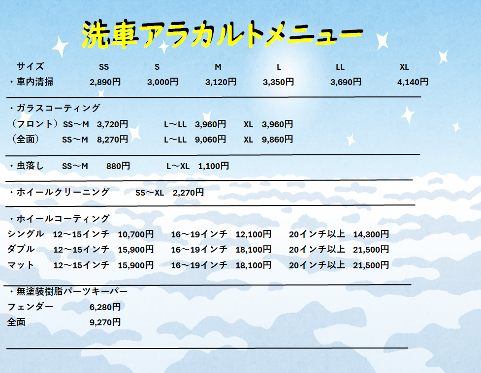 ・コーティング施工中の代車をご希望されるお客様は事前にお申し出下さい。