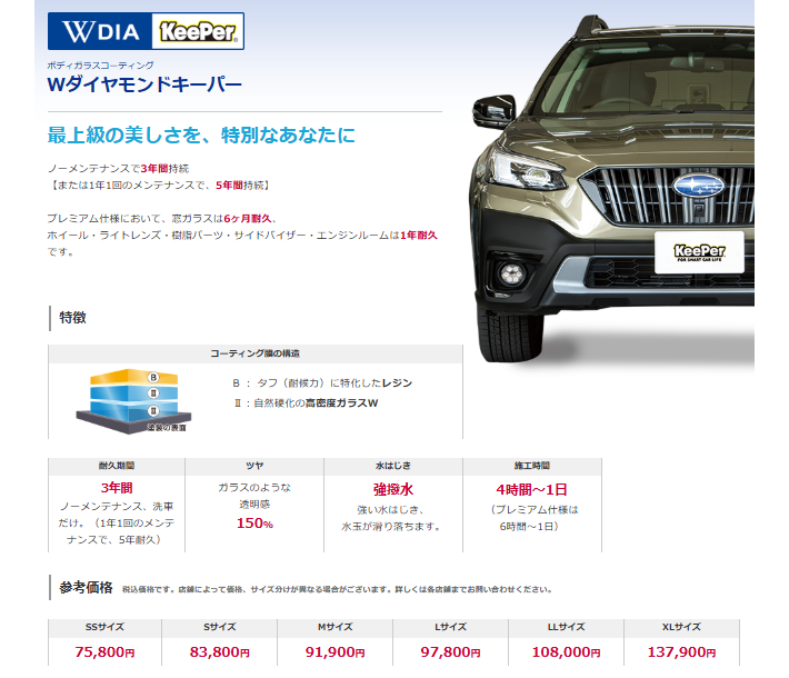 強撥水&三層構造の艶と輝き!Wダイヤモンドキーパー