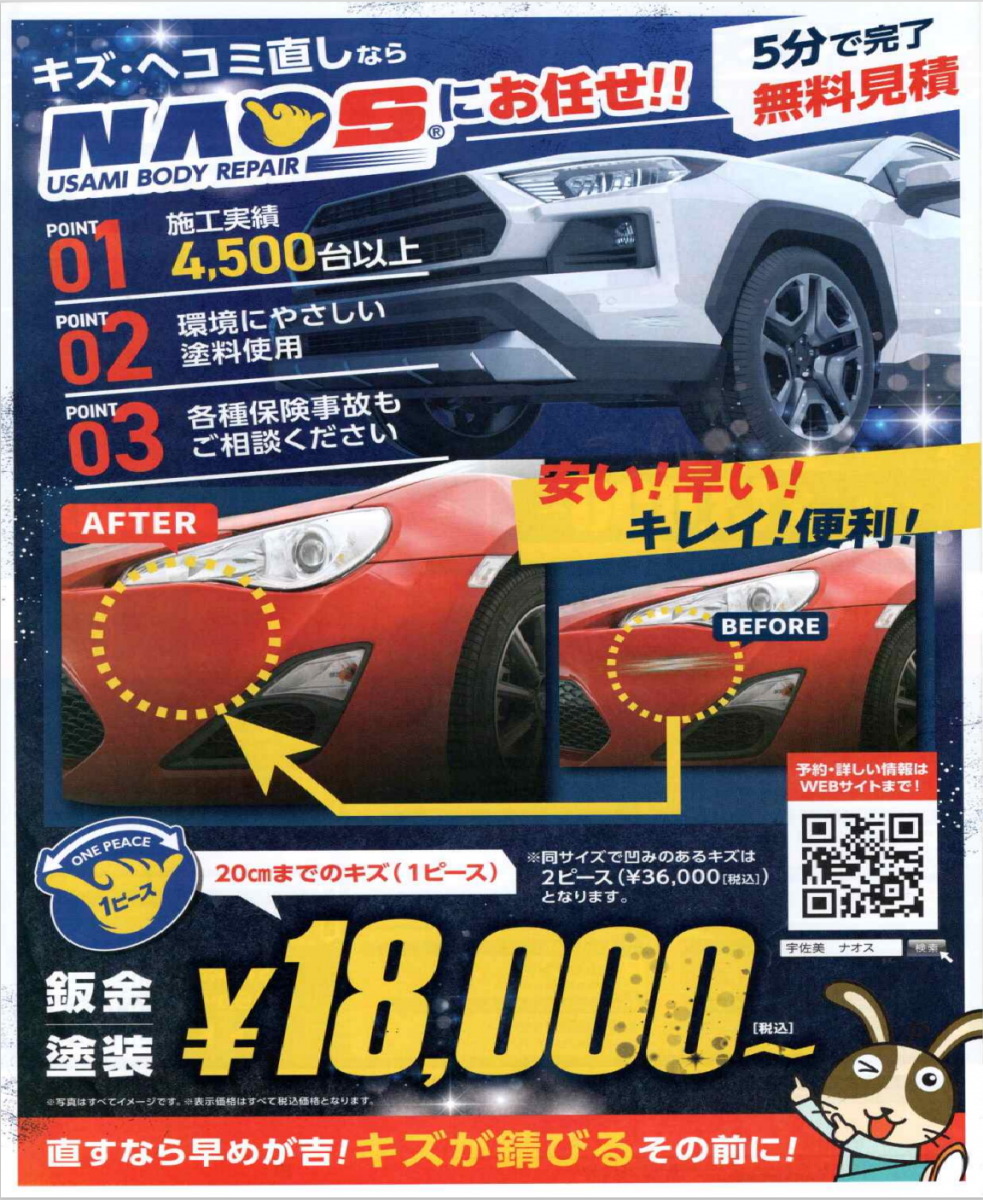 キズ・ヘコミ直しならNAOS USAMIBODYREPAIR