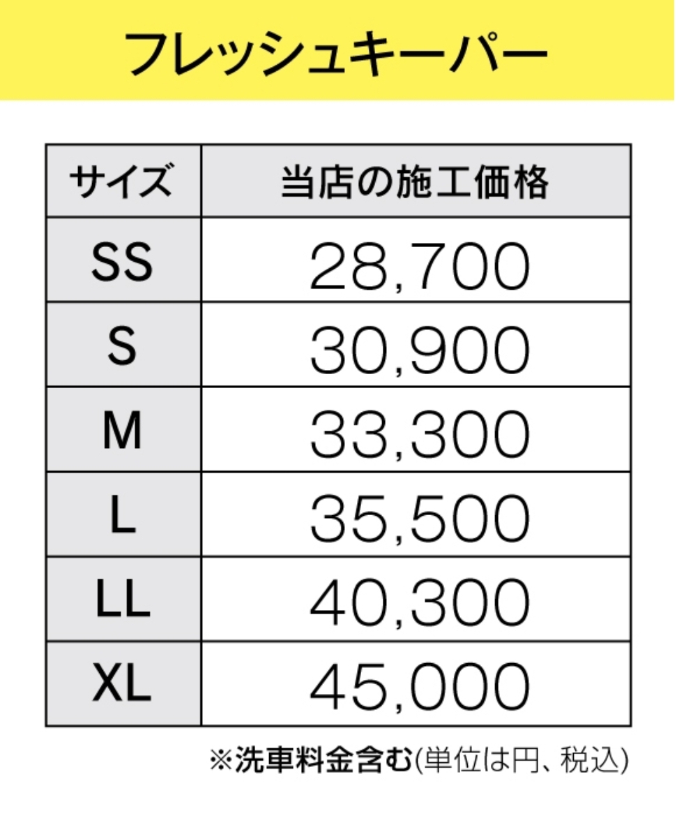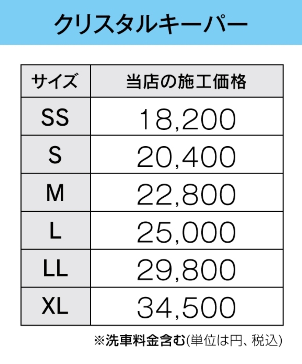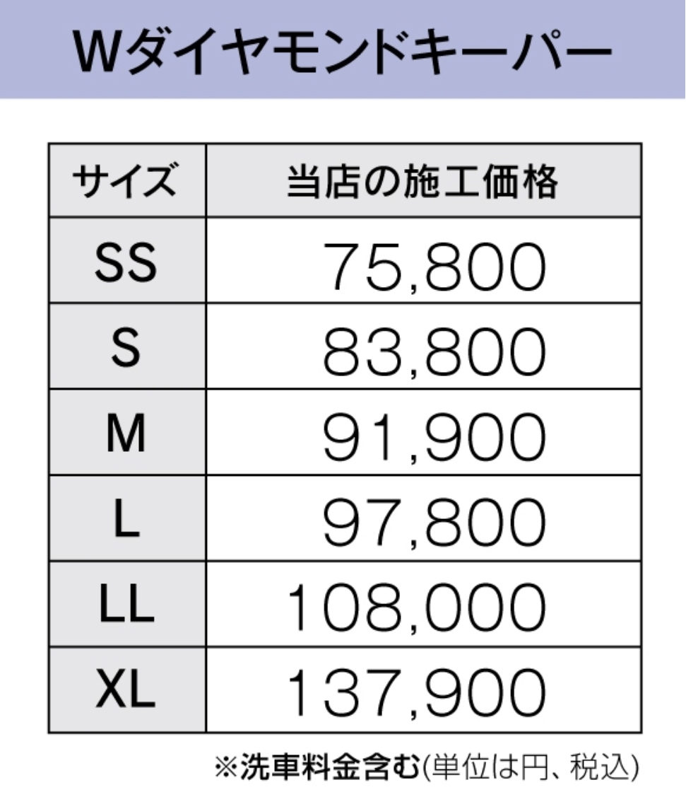 キーパーコーティングは、新車にかけると新車よりもっと光ります。すでにお乗りの愛車も、新車のようによみがえります。 コーティングした後は、お好きな時に洗っていただくだけで、ずっとキレイが続きます。 ご自身にピッタリのコーティングをご検討される中で、1つの目安として、ご覧ください。 ご不明なことは、スタッフまでお声掛けください。
