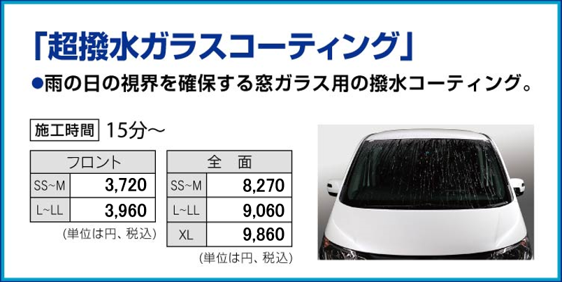 雨の日も快適な視界を! 超撥水ガラスコーティング