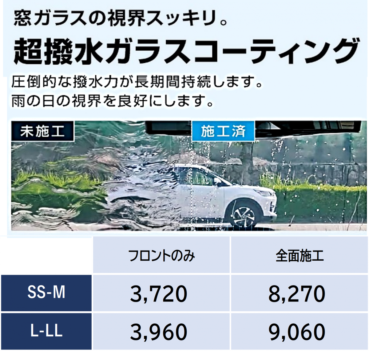 ボディーガラスコーティング・ポリマーコーティング・窓ガラスコーティング