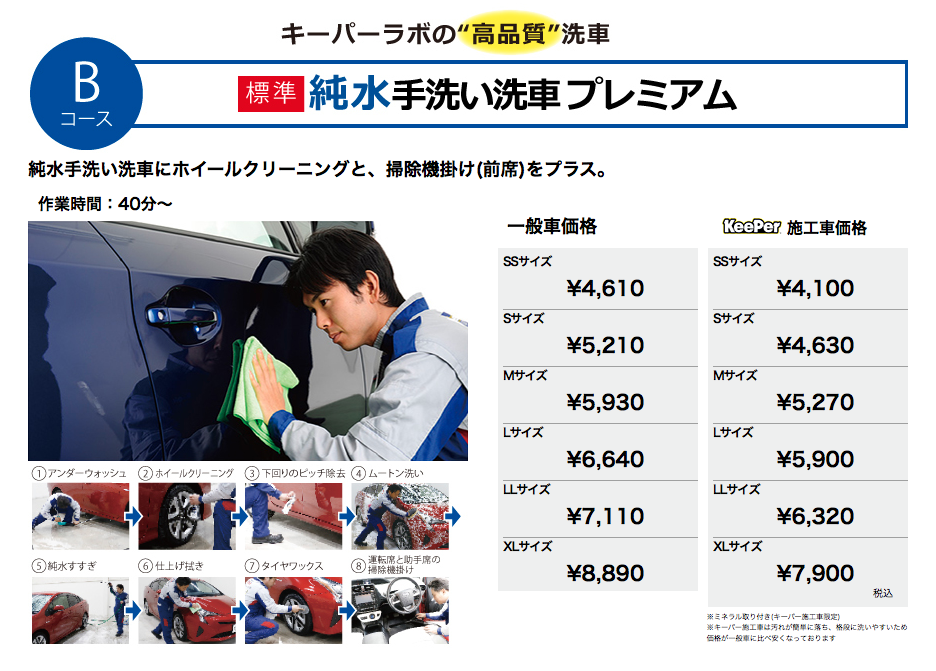 全てのコーティング・手洗い洗車は純水仕上げ、