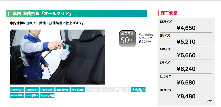 上記の車内清掃価格は、洗車お買い上げのお客様限定価格です。