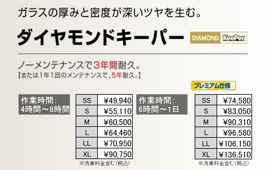 ぶ厚いガラス層がダイヤモンドキーパーの2倍で、ツヤがアップして保護能力もより強力に。