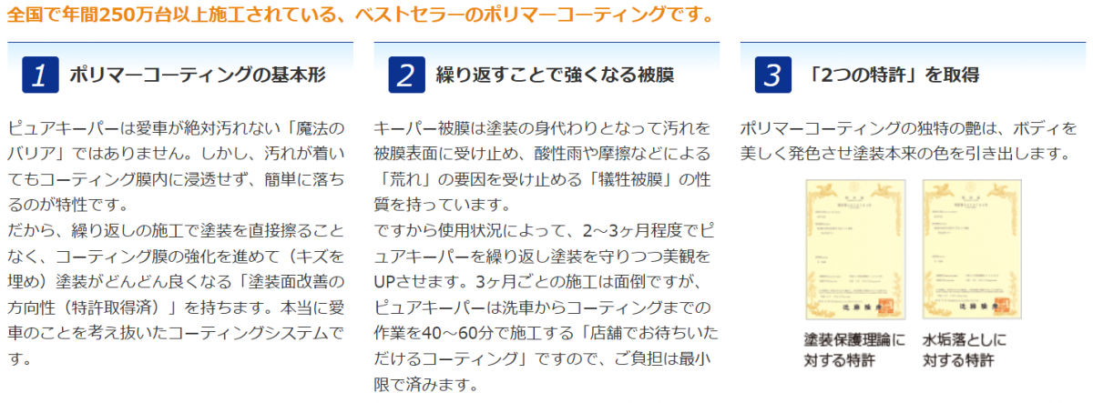 今やキーパーの中で一番人気で施工台数が多いコーティングとなっています。