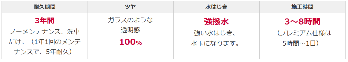 ちょっといいコーティングをしたいけど、コスパも求めている方におすすめです。