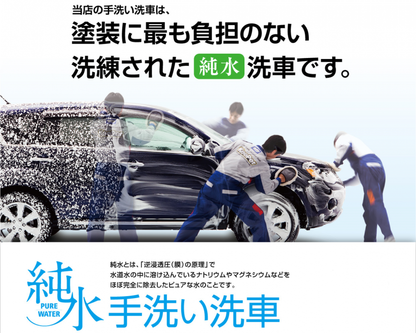 さらに、最後の仕上げで使用する「純水」は、 今までの洗車とは別次元のピュアな仕上がりを実現しています。