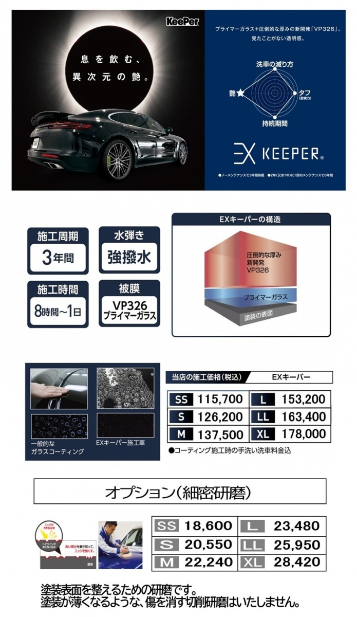 して、異次元のツヤを作り出します。またこのコーティングは酸性雨や紫外線に対しての
