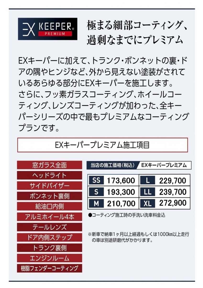 *施工1ヶ月以内にコーティングの状態の点検を兼ねた無料手洗い洗車をご提供いたします。