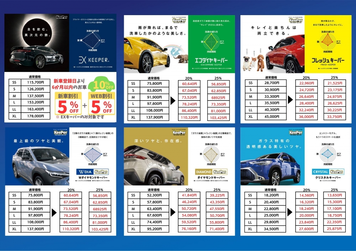 A.当店はキーパーラボではございません。しかし、当店は洗車・コーティングをするスタッフは多くがコーティング資格保持者ですし、メニューもキーパーラボ店と同一となっておりますので、ご安心ください!!