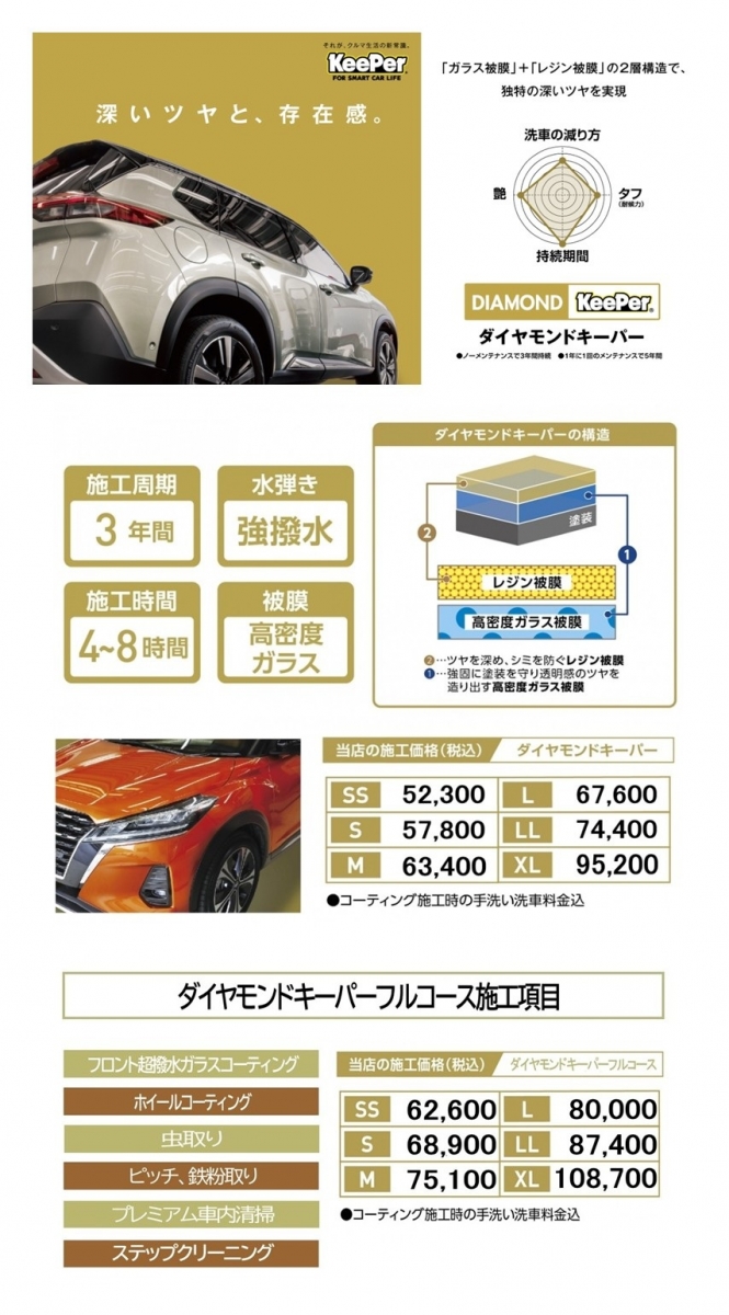 イベント期間中、キーパーコーティングが20%OFFに!※