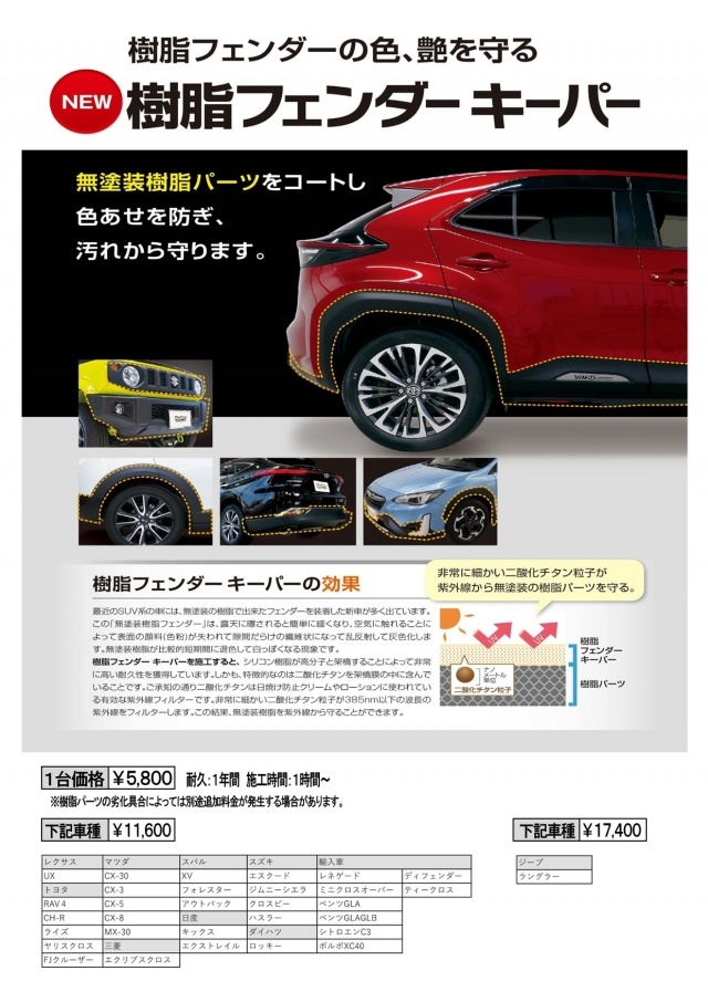 樹脂パーツを守る! 樹脂フェンダーキーパー!