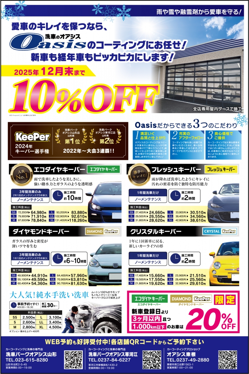 2025年12月末までのご予約でコーティングメニューが10%OFFに😊 *EXキーパーは対象外とします*