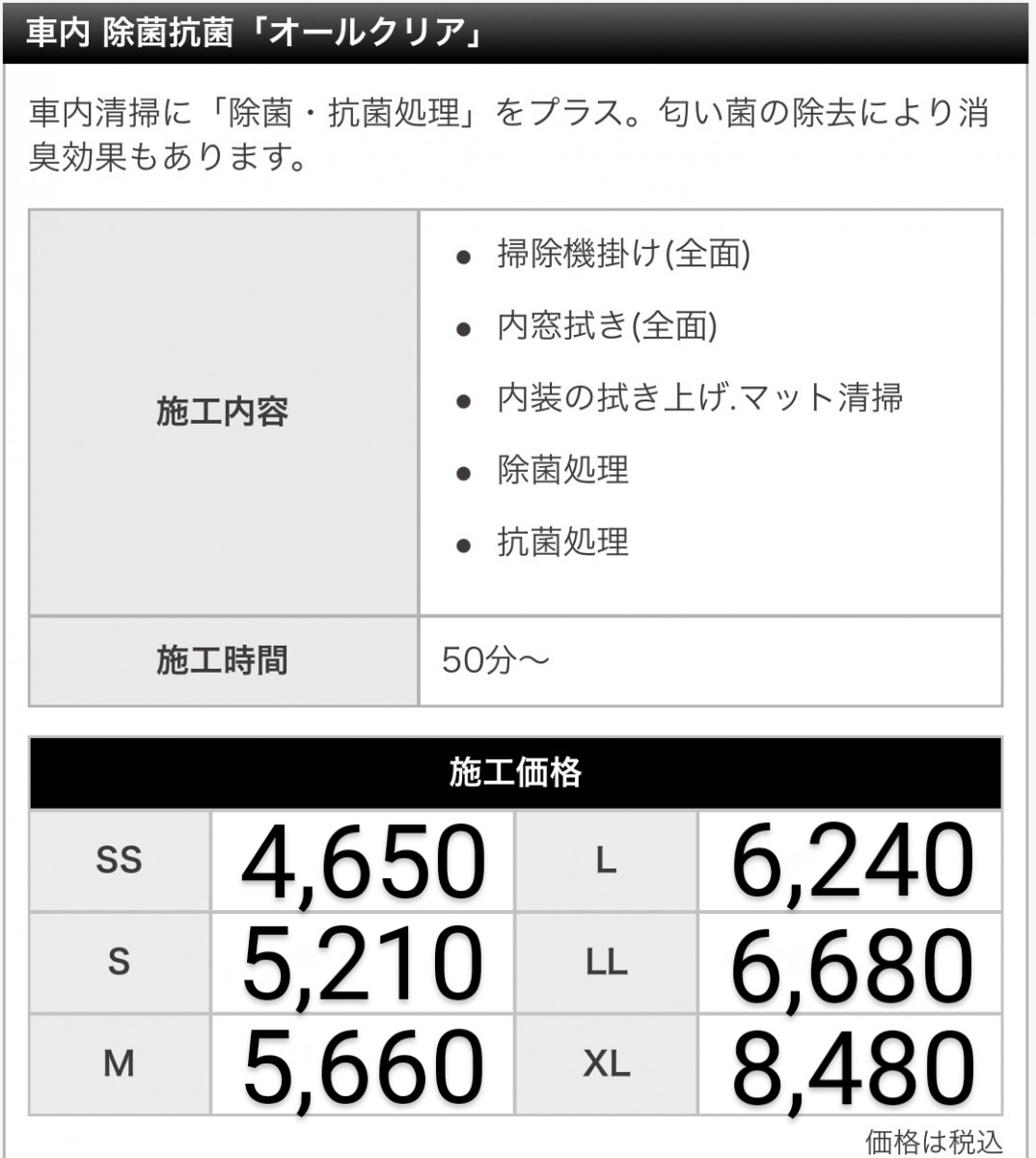 ※車内清掃のみの受付は行なっておりませんのでご了承ください。