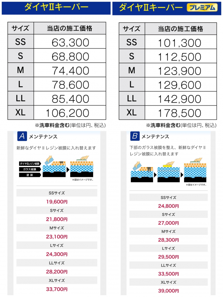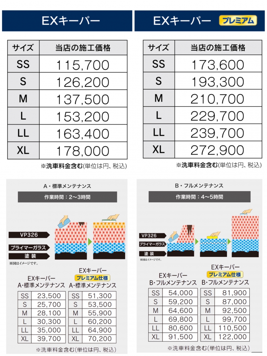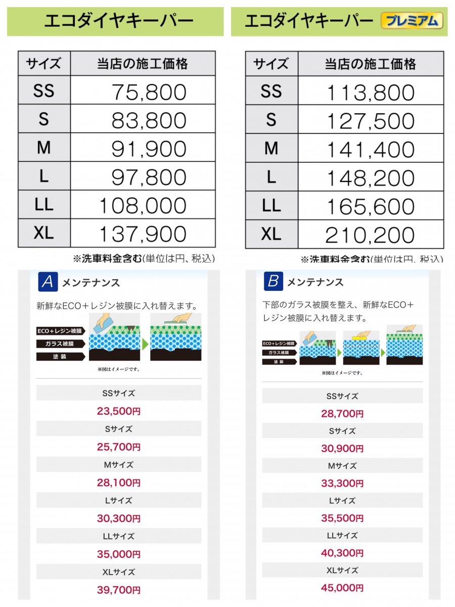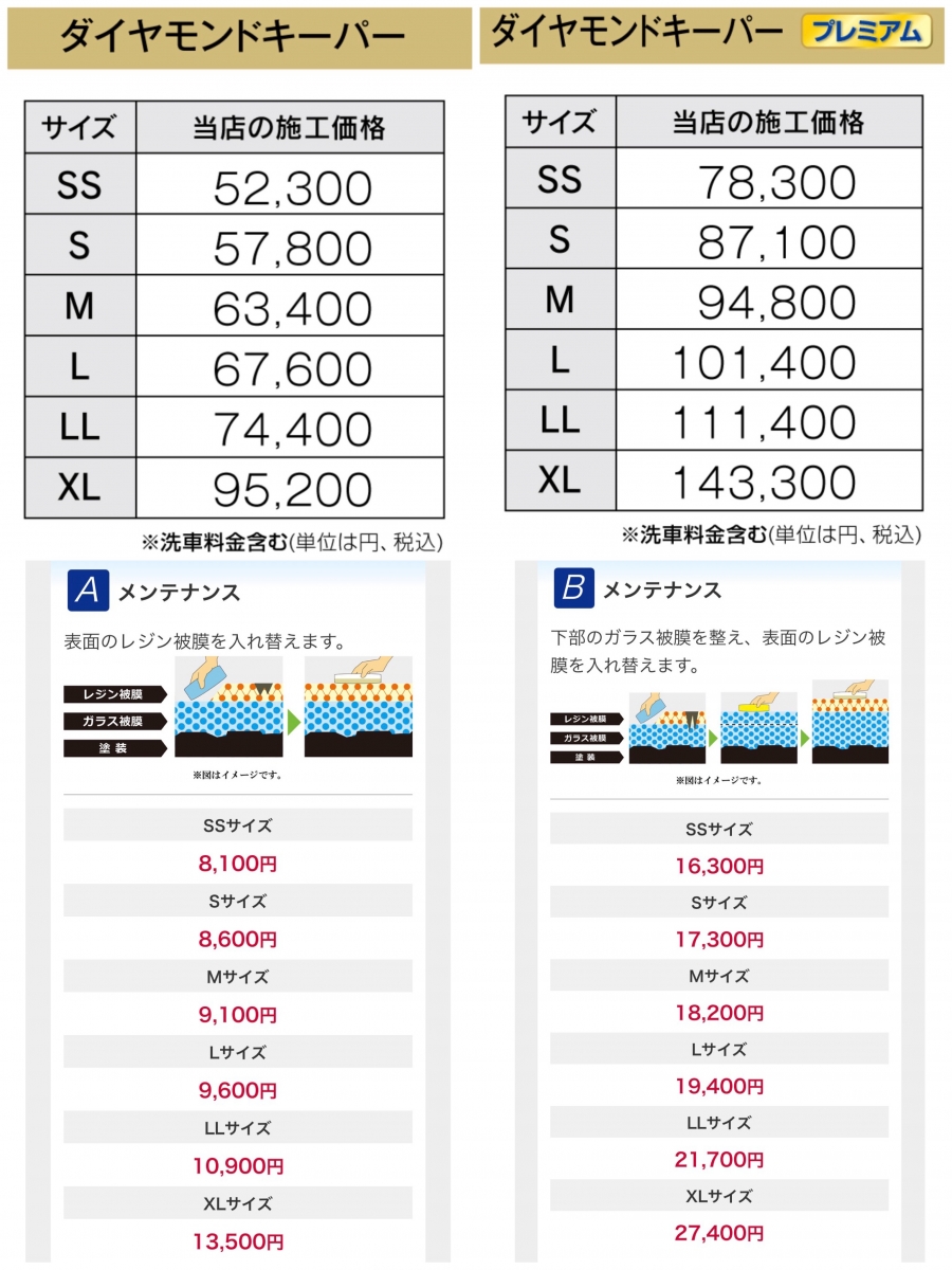 当店では、お車のサイズによって洗車・コーティングの価格が変わります。