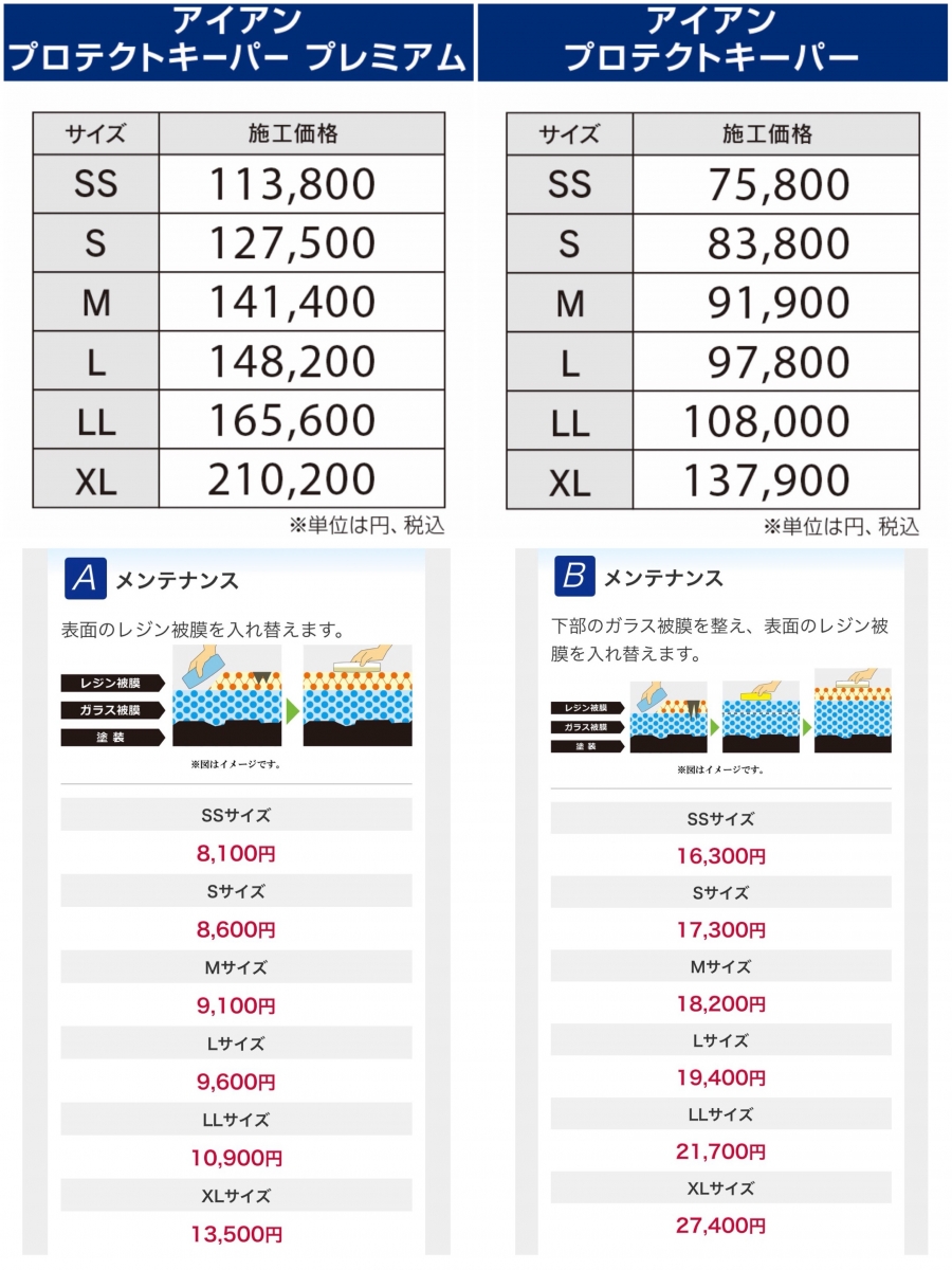 〇価格はサイズによって変わりますので、ページ上部の「車種サイズ一覧」からご確認ください。