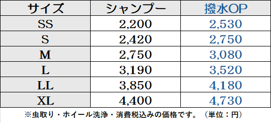 当店では、お車のサイズによって洗車・コーティングの価格が変わります。