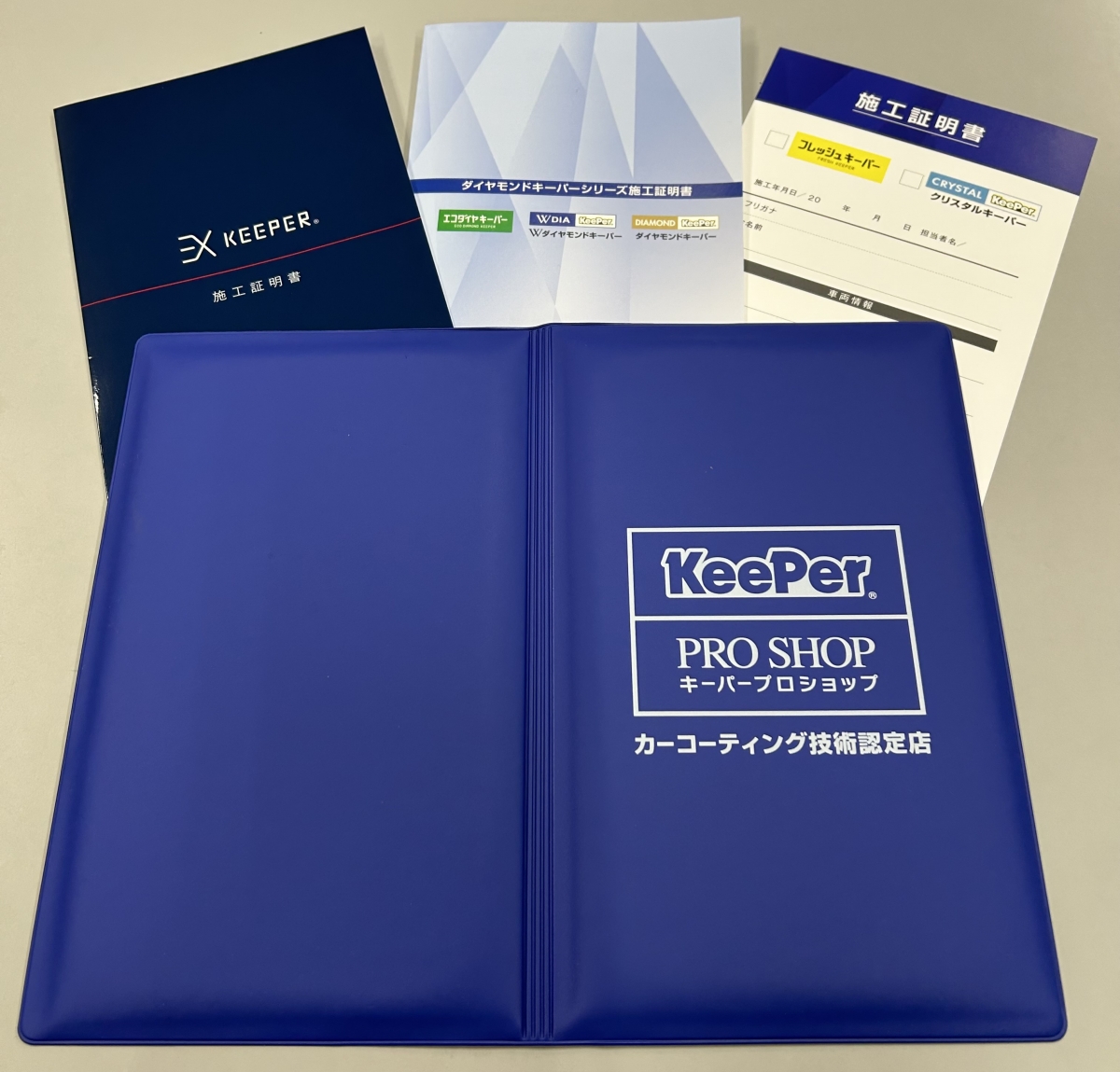 その際、コーティング施工の証明となりますので、保管を宜しくお願いします。