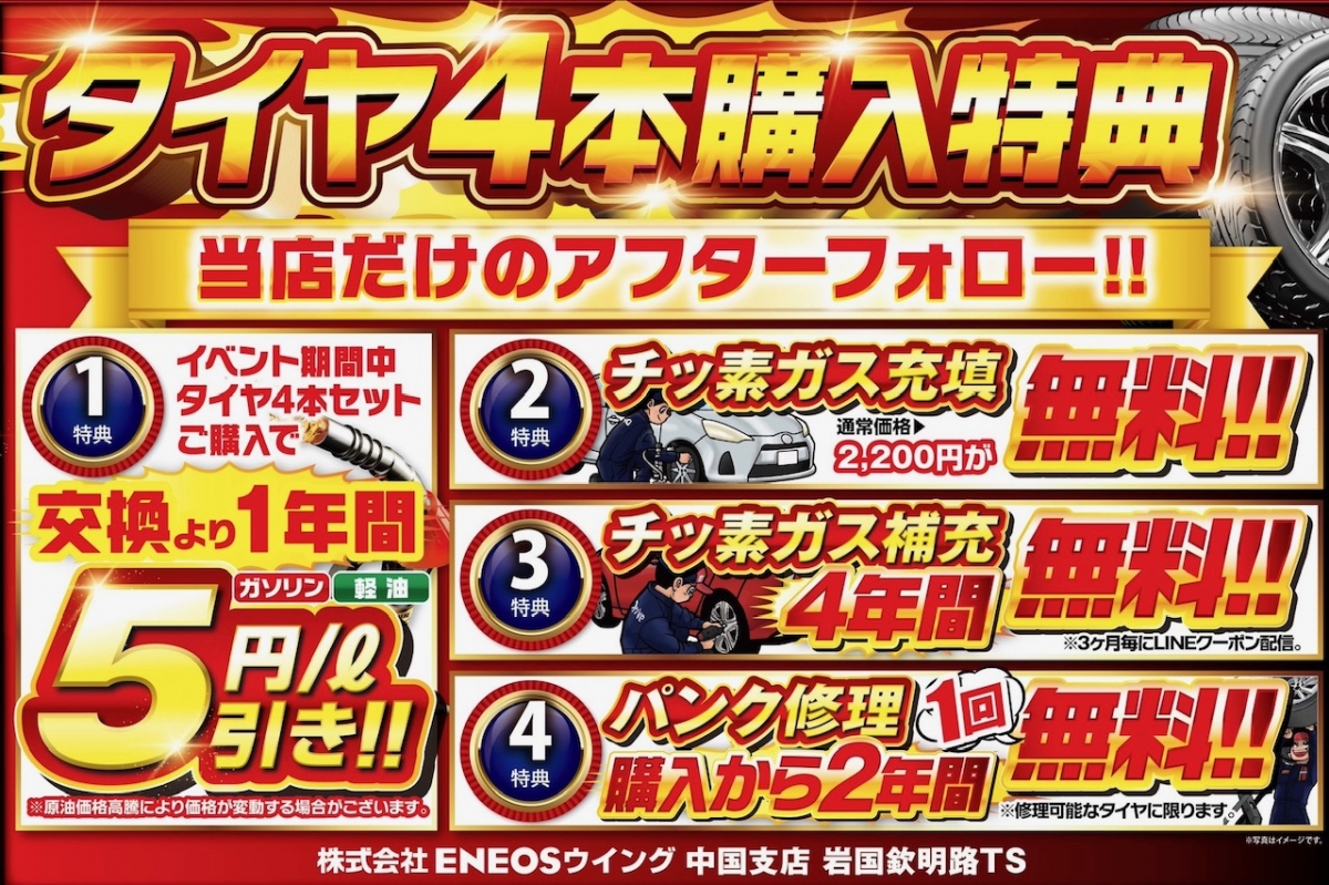🎉 タイヤ4本購入で超お得!!